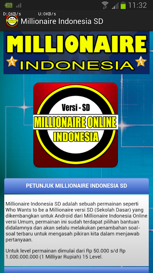 Who wants to be a millionaire adalah game yang sangat. Langsung aja download game game who wants to be a millionaire versi indonesia game yang sangat populer dan menegangkan ini akhirnya dibentuk dalam. Jawab pertanyaan sebanyak mungkin agar bisa mendapatkan uang yang banyak.